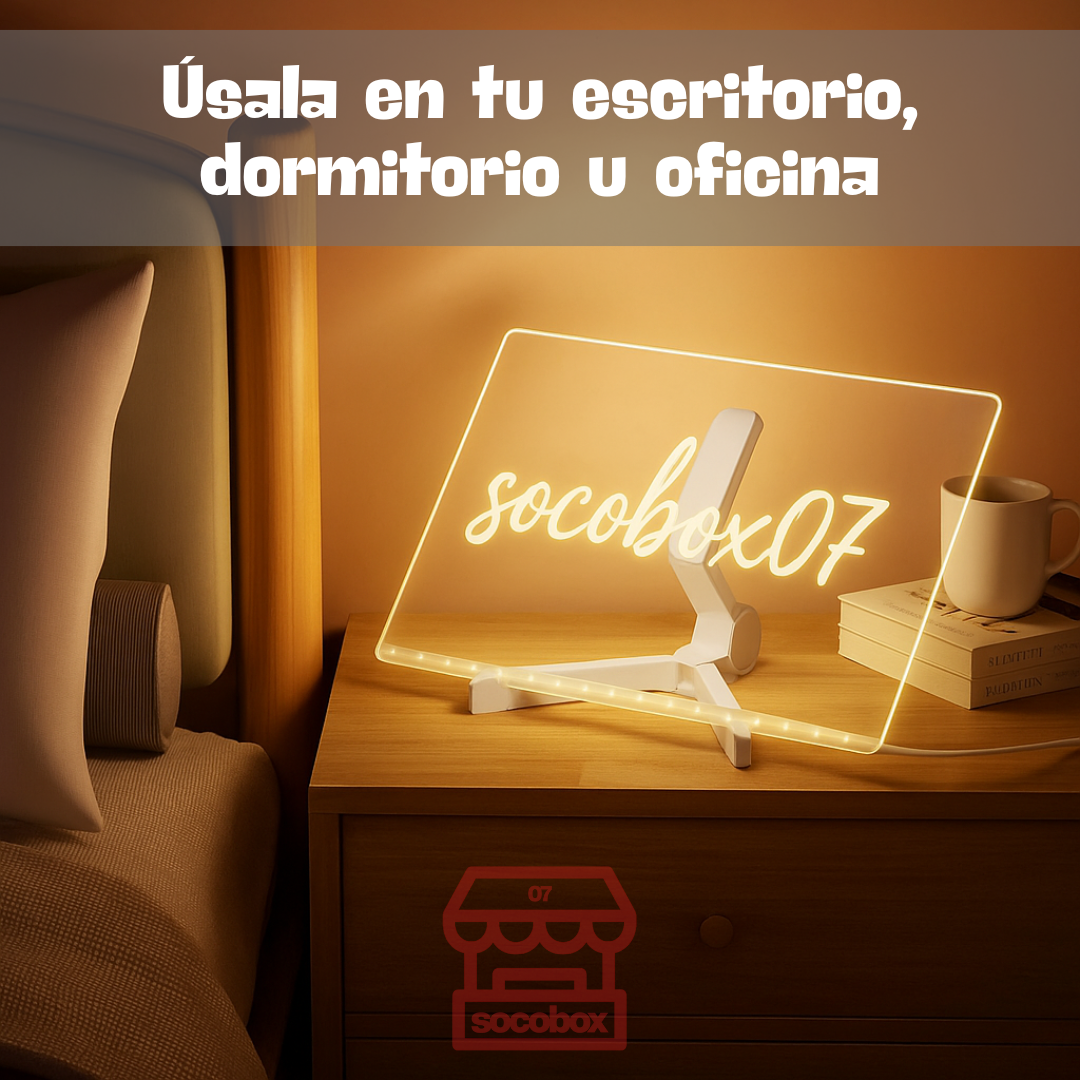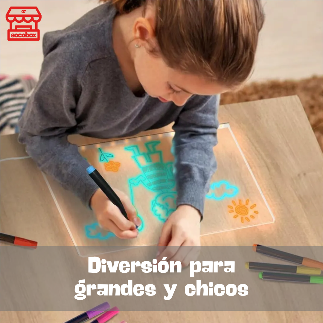 La Pizarra Mágica LED es el lienzo perfecto para liberar la imaginación de grandes y chicos. Dibuja, escribe y crea mensajes brillantes con luces multicolor que convierten cualquier espacio en un lugar divertido. Ideal para sorprender a tus hijos, compartir momentos creativos en familia y estimular el aprendizaje jugando.